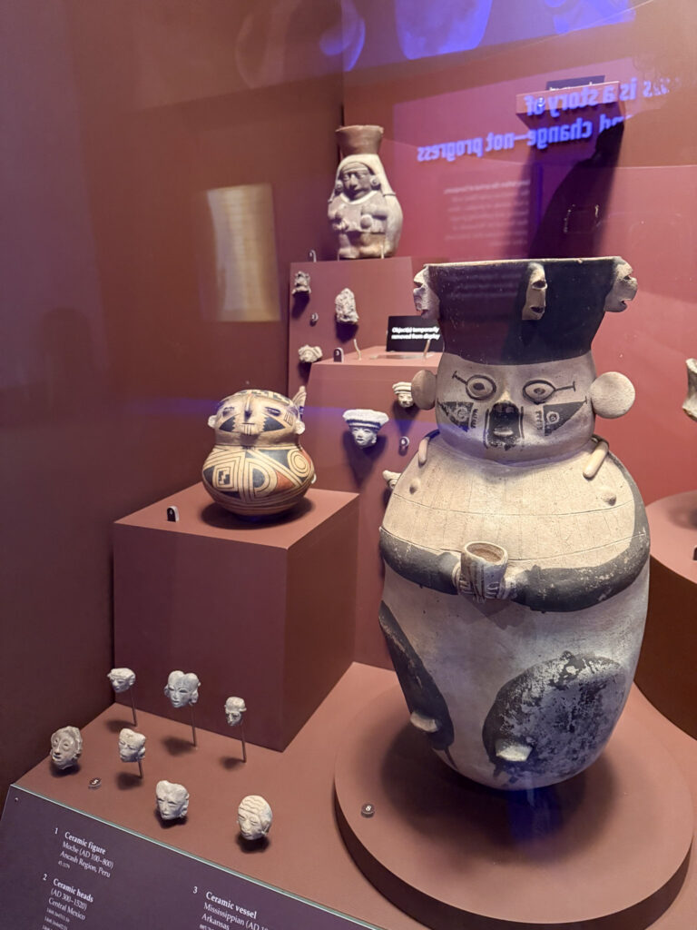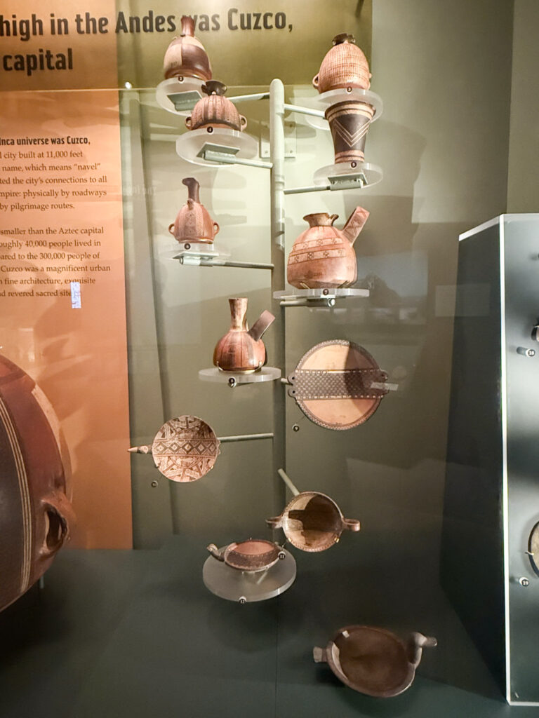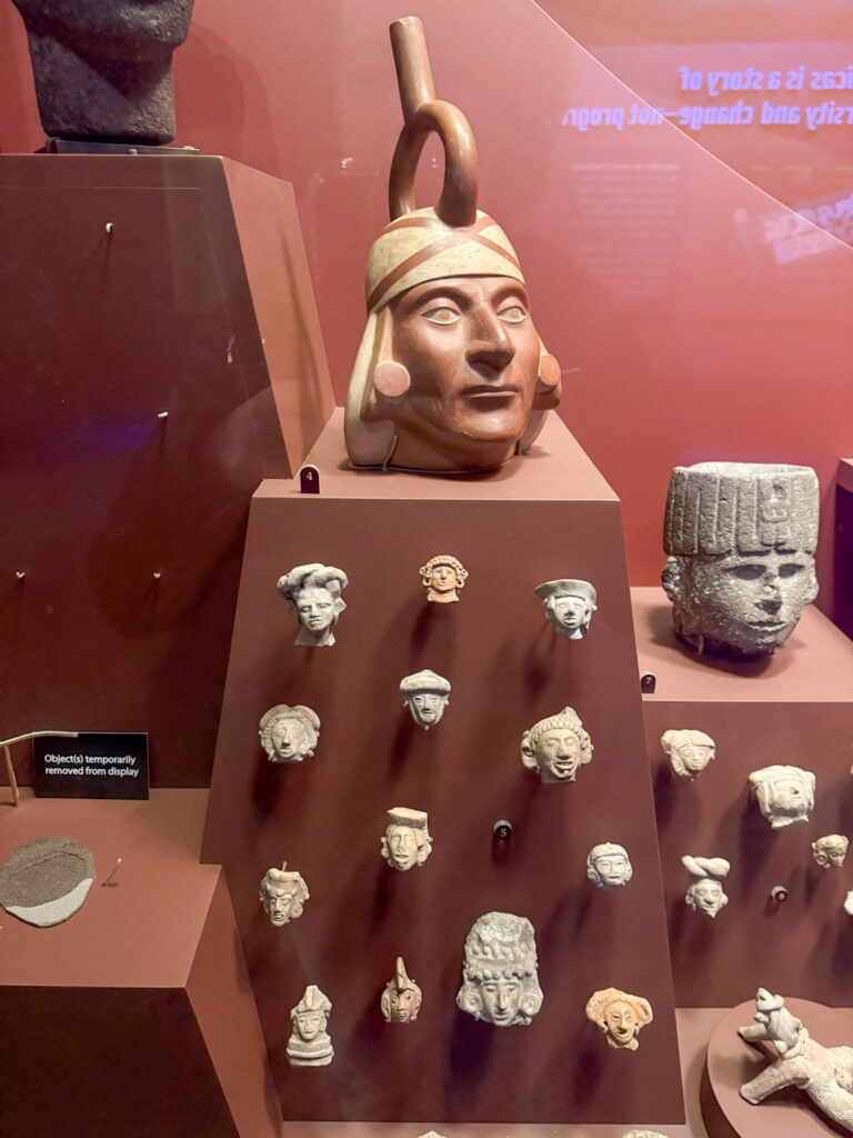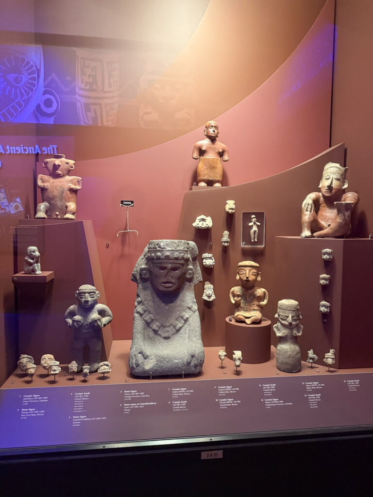 After saying hello to Maximo the first exhibit I visited was the Ancient America’s hall. Wow – I spent so much time in here! This impressive exhibit covers 13,000 years of history with over 2,000 artifacts to look at. It shares the history of “Ancient America” – not only the Aztec, Mayan and Inca empires but the hundreds of diverse societies that lived and thrived before European settlers arrived. I was really impressed not only with the wealth of information contained in the galleries, but the way all of the artifacts were displayed. The exhibits were not displayed in chronological order, but rather grouped together around common themes all of the societies shared. I honestly lost track of time in here. Here are some of my favorite things I saw here.