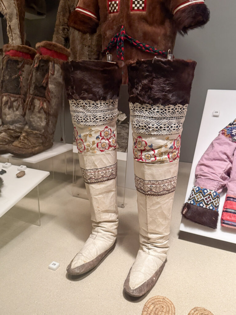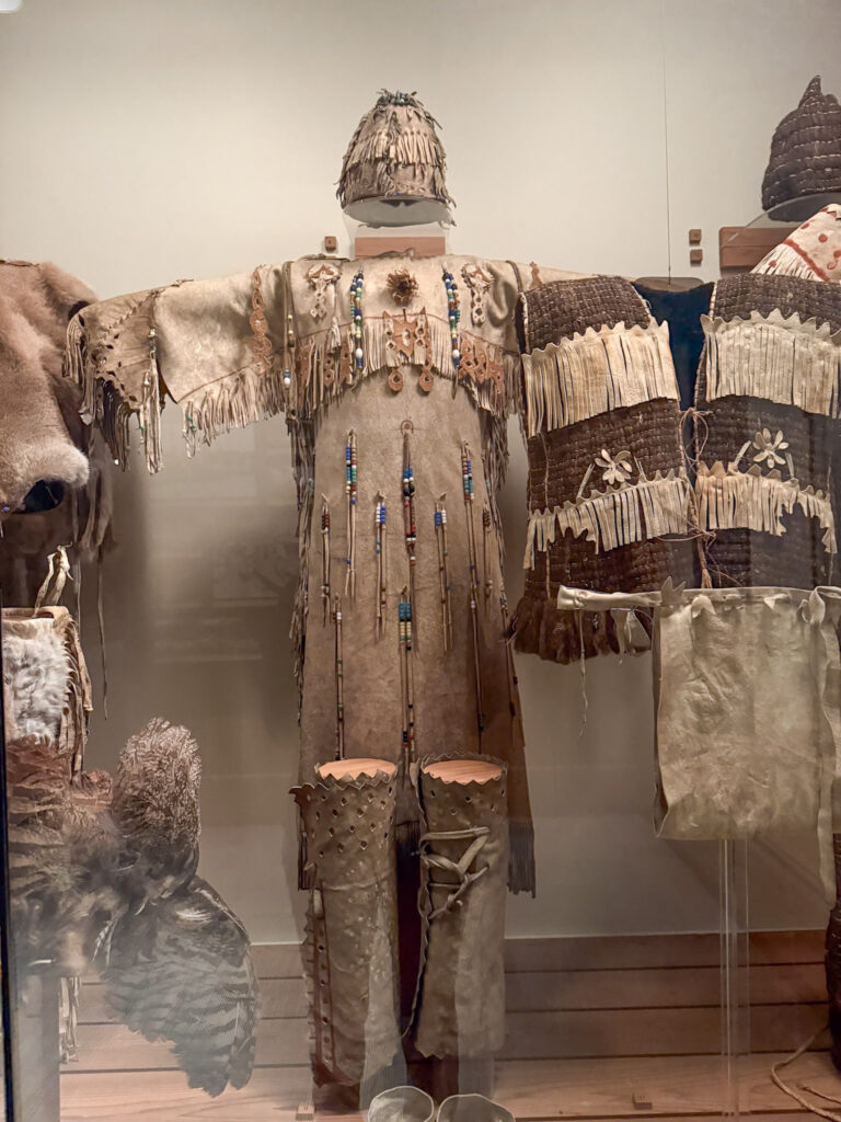 At the end of Ancient Americas you immediately walk into an exhibit dedicated to Native Americans living in the Pacific Northwest. This is a culture I don’t know a lot about, so it was interesting to walk through and learn about them and seeing all of the artifacts, especially the clothing. It is always amazing to me how they lived and survived in such extreme conditions but yet took time to make such beautiful clothing. Some of the items, especially the boots, reminded me of boots that my husbands mom has from the time she lived in Greenland. I thought that was really interesting.